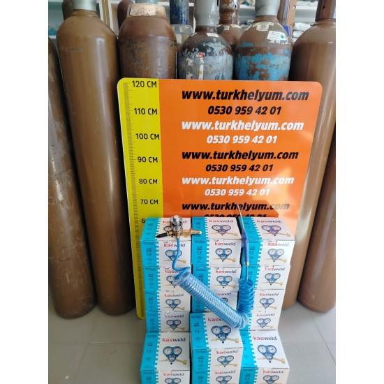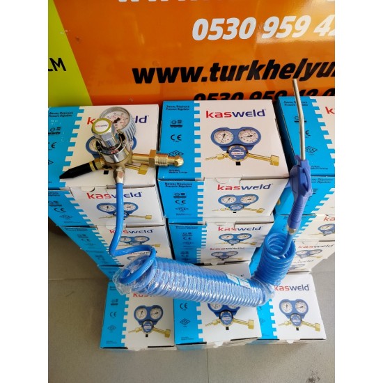 Kasweld 7.5m hortumlu çift çıkış helyum regülatörü